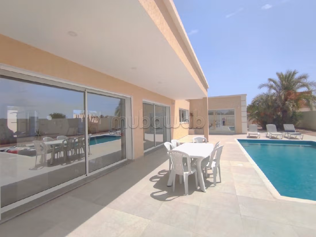 هذه الفيلا الفاخرة للبيع ب جربة. .مجهزة بطبق الأقمار الصناعية وباب متين. الإقامة آمنة. استمتع براحة التكييف. يحتوي السكن أيضًا على حمام سباحة.