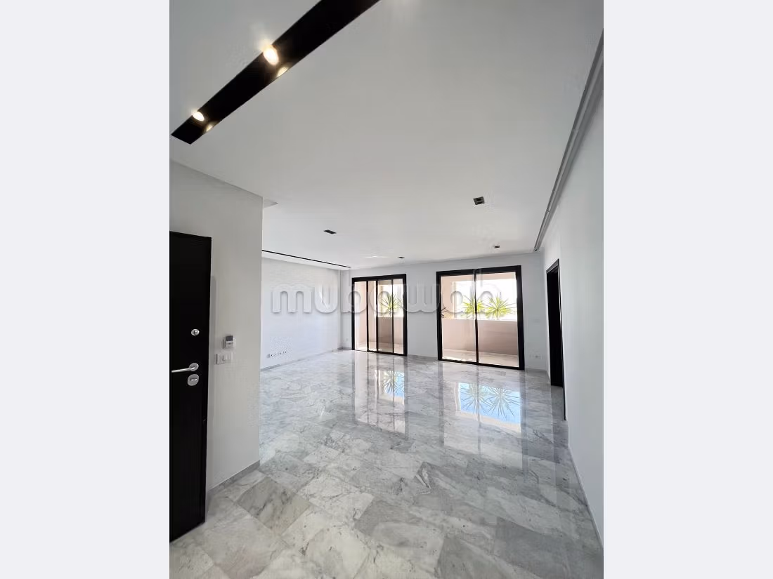 Ideally located apartment for rent. Price 3,000 TND. 4 living areas, 3 bathrooms. Dimension 1 m². 3 rooms. Less than 1 year. Thermal insulation and soundproofing, Secured door, Central air conditioning.