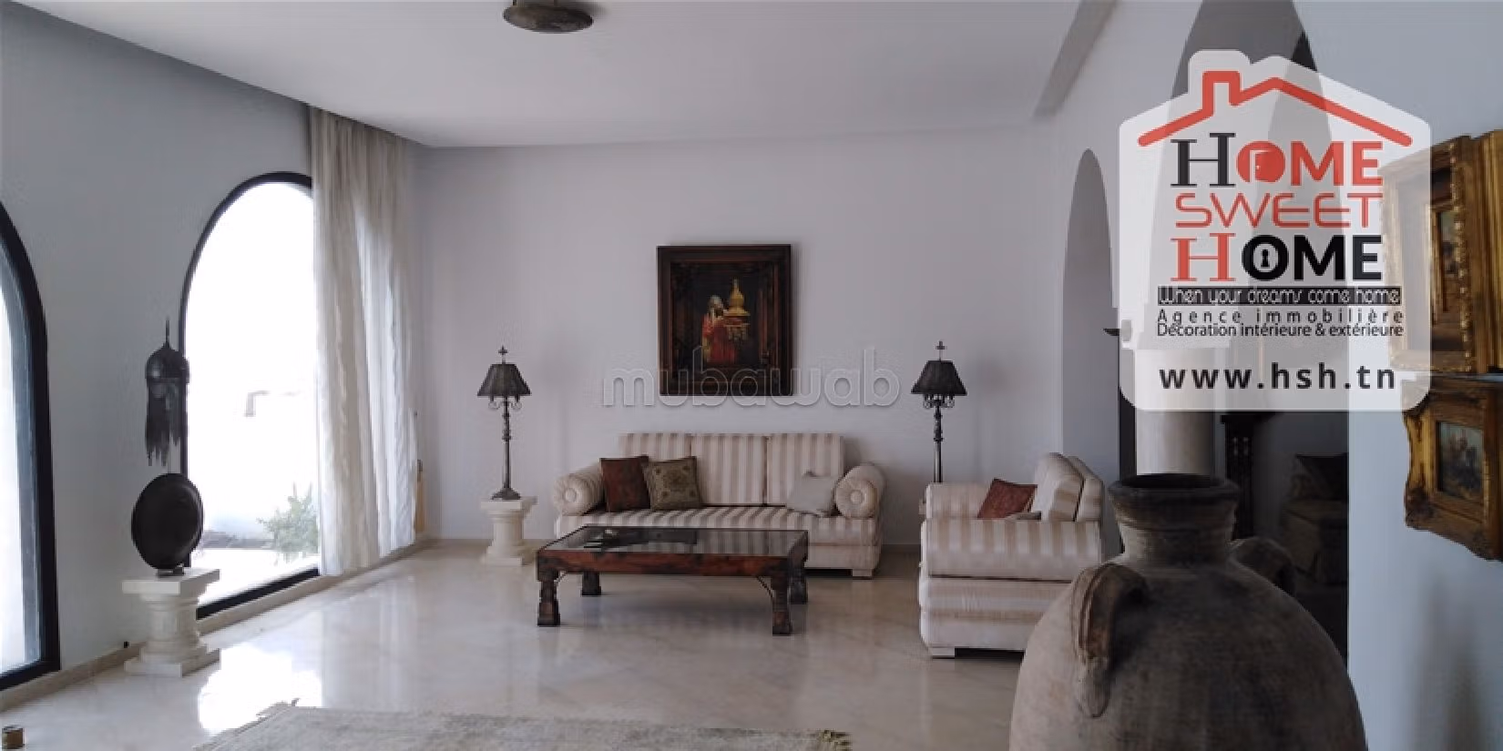 Rent this fabulous villa. Price 15,000 TND. 5 living areas, 4 bathrooms, 360 m². 4 bedrooms. New. Furnishings.