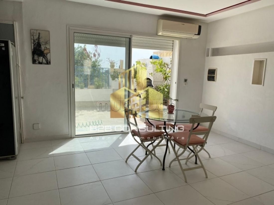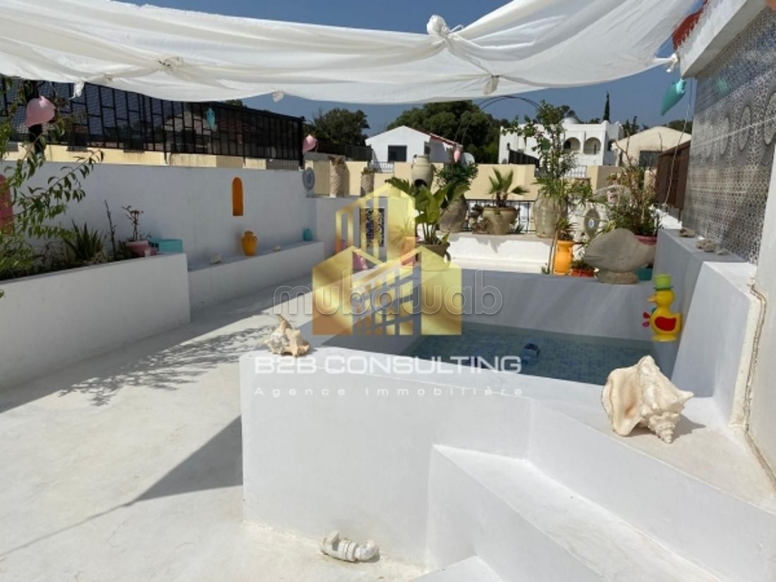 Bright triplex in Gammarth just 5 minutes from the beaches. 4 bedrooms including a master suite. Large living room and dining room. Equipped kitchen. 3 bathrooms toilets. South-facing terrace with bay window overlooking the living room. Magnificent entrance terrace built in handmade Nabeul tiling with style. 60m* ROOFTOP equipped in Djerbian style with a small pool overlooking the lake and Tunis. The Gammarth forest has a view between the house and the tourist area.