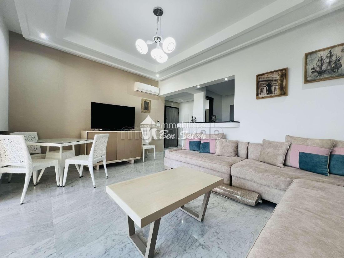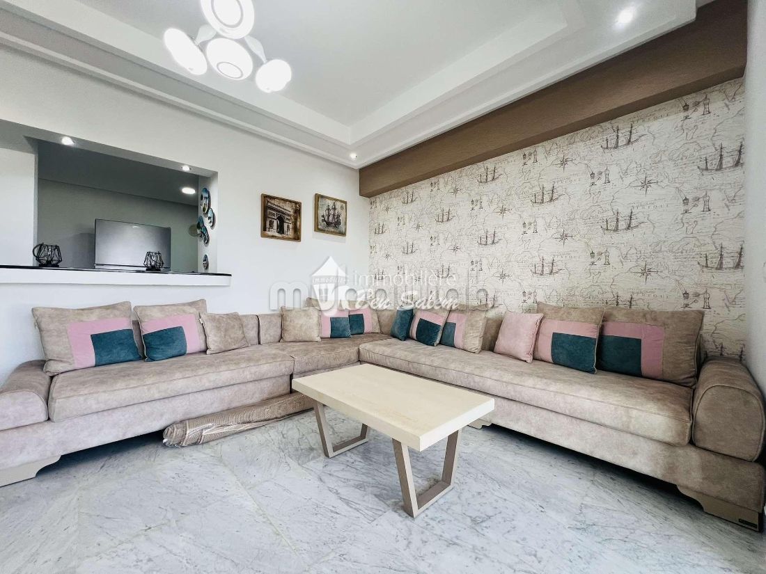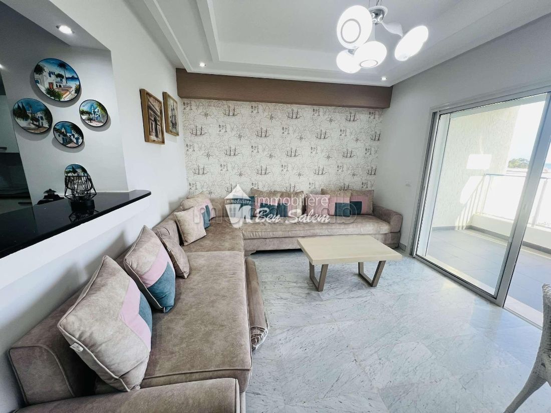 For rent all year round, a beautiful apartment with a pleasant sea view, located on the 2nd floor, in a guarded and secured residence very close to the sea in Hammamet North, near Hotel Sultan and Badira, close to all amenities and leisure, and 5 min from the city center.