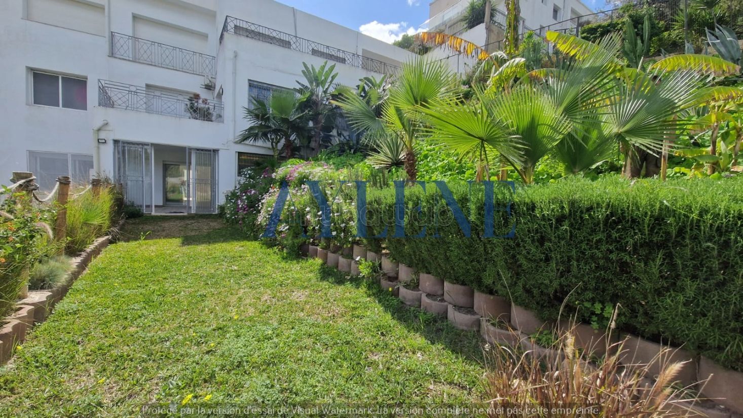 AYLENE Real Estate offers you for rent an apartment with garden and sea view. It consists of a spacious living dining room opening onto a large balcony facing the sea, a fully equipped kitchen, and a bathroom.