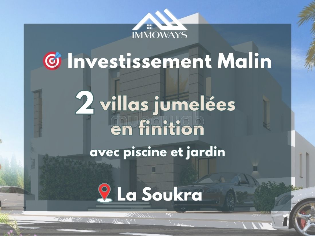 Exclusive project of two twin villas underway, located in one of the most sought-after neighborhoods in La Soukra. Ideal for a primary residence or a secure investment.