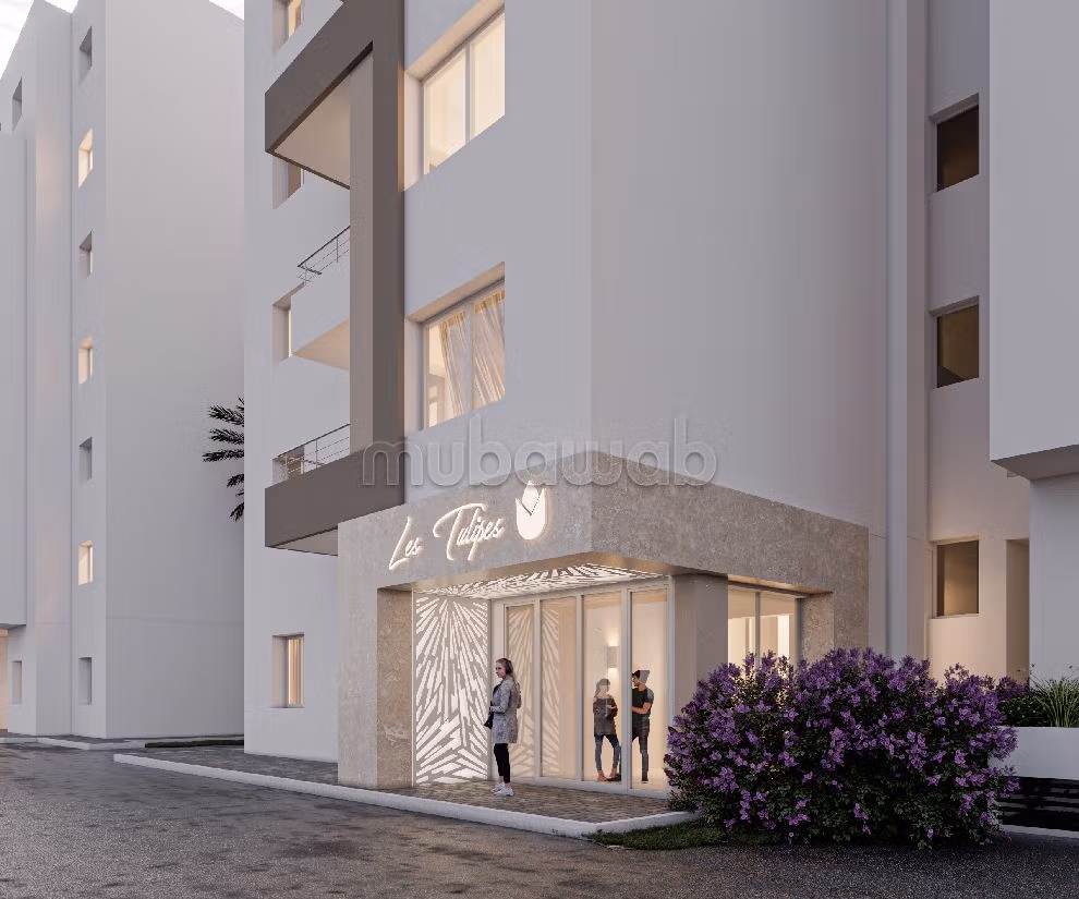 Lovely apartment for sale. Price 287,000 TND. 3 living areas, 2 bathrooms, area 113 m². 2 rooms. 5th Level. Less than 1 year. Covering: Marble. Robust Door, On-Site security, Secured neighbourhood.