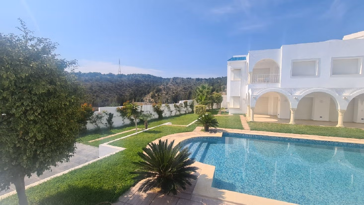 A vendre une charmante villa moderne style arabe avec piscine situé sur les hauteurs d'Hammamet avec une vue sur mer et montagne imprenable