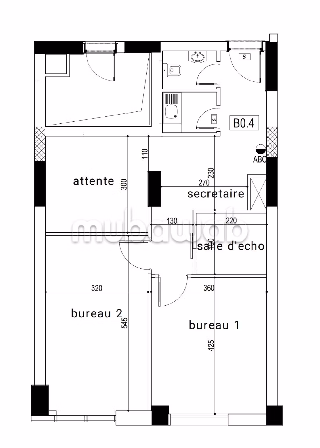 on propose à la location un bureau situe au rdc composé de deux grands bureaux une salle d attente un coin archive et disposant de sanitaire, kitchenette et de 2 deux place parking.