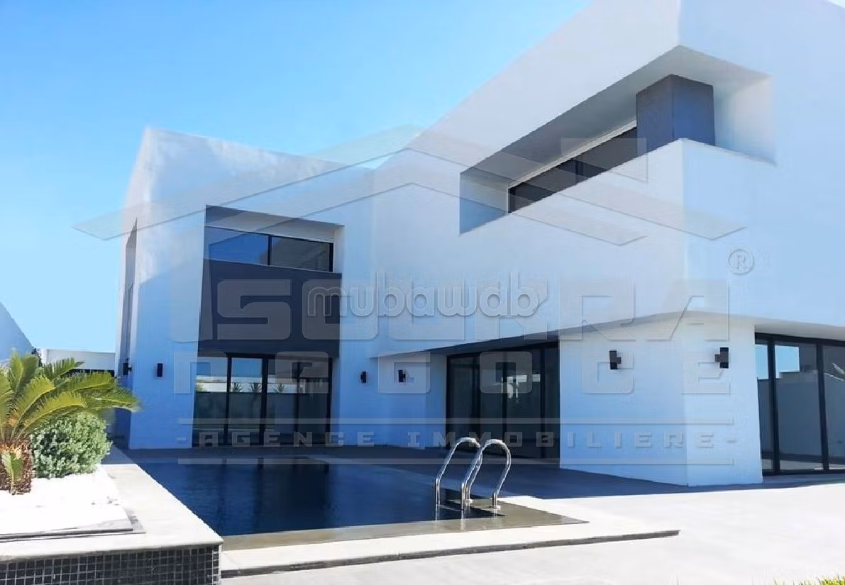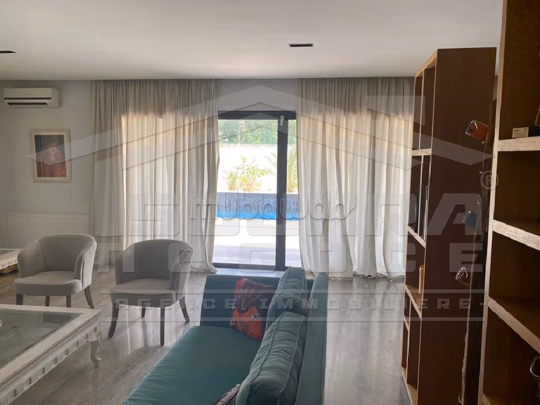 Soukra Negoce met à la location une magnifique villa S3 haut standing avec un jardin et une piscine d'une superficie totale de 500m2 dont 350m2 bâti située dans quartier calme et très agréable à la Soukra.