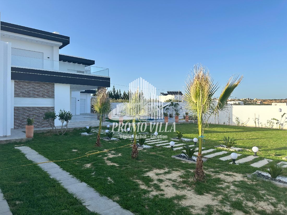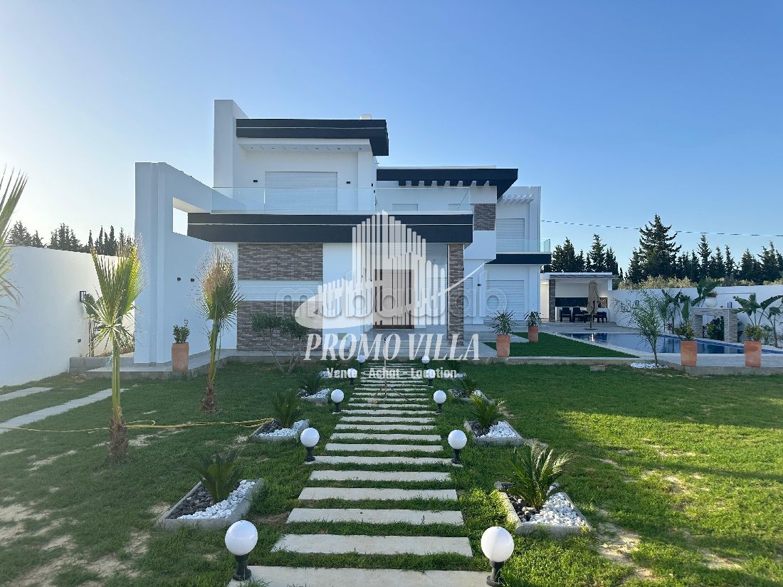 A vendre une belle demeure située à Hammamet Sud zone Monchar dans un quartier calme et entourée des belle villas, d’une belle architecture moderne, bâtie avec des matériaux de luxe.