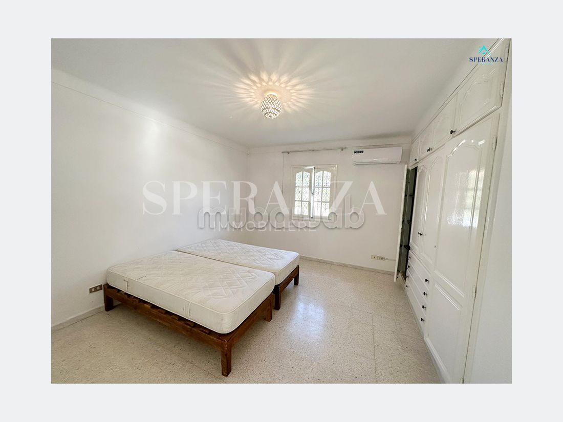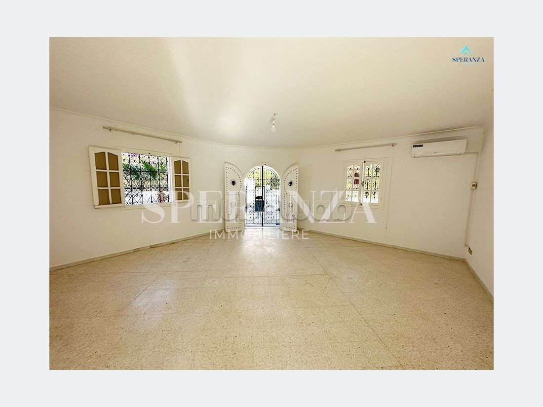 Speranza immobilière vous propose à la location Cette villa situé à Hammamet (Zone Craxi) semi meublé. L'entrée principale bénéficie d'un jardin gazonné qui offre plusieurs espaces. Au réez de chausser se trouve une salon lumineux grâce à ses fenêtre qui offre une vue sur le jardin,une cuisine aménagée avec des espaces de rangement,une salle de bain pour les invités, deux chambres à coucher . Un garage pour la voiture .