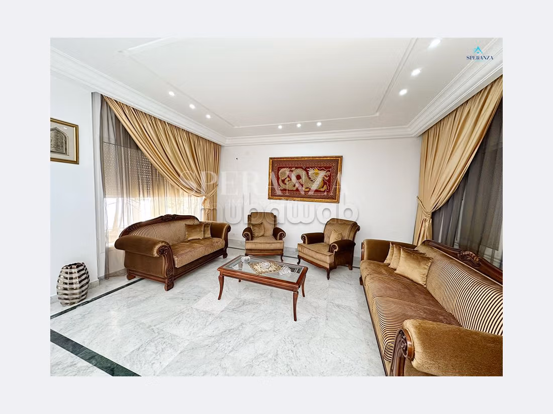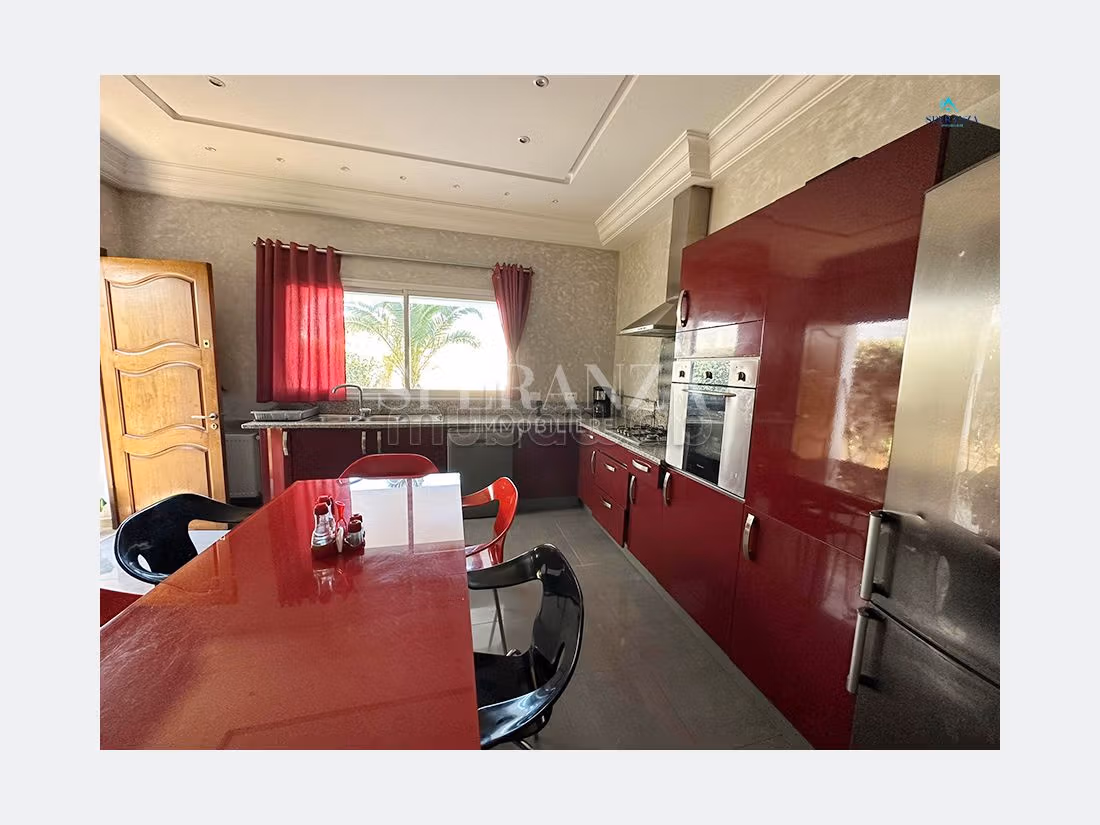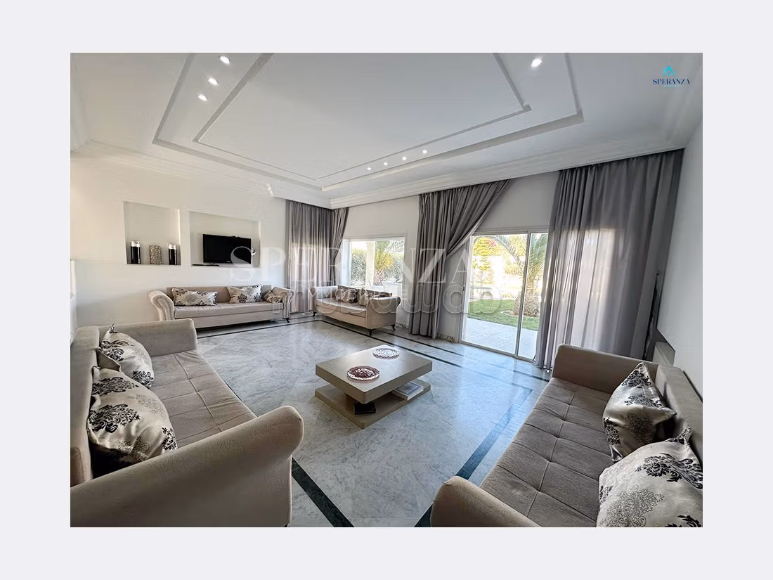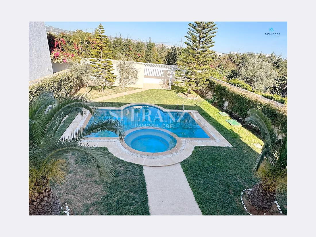 Speranza immobilière vous propose à la location annuelle cette villa situé à Hammamet Centre .L'entrée principale bénéficie d'un jardin gazonné qui offre plusieurs espaces, une piscine. Au rez de chausser se trouve une salon lumineux grâce à ses fenêtre qui offre une vue sur le jardin,une cuisine aménagée avec des espaces de rangement,une salle d’eau pour les invités, petit chambre femme de menage . Un escalier nous mène vers 1 er étage qui se compose quatre suite parentale avec terrasse qui offre une vue sur piscine ,une salle d'eau, kitchenette.une cuisine à l'extèrieur Un garage pour la voiture .( NB: non meublée)