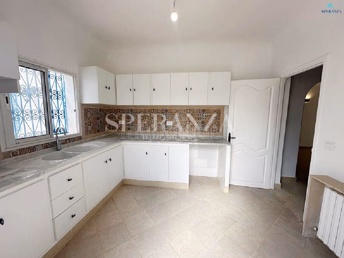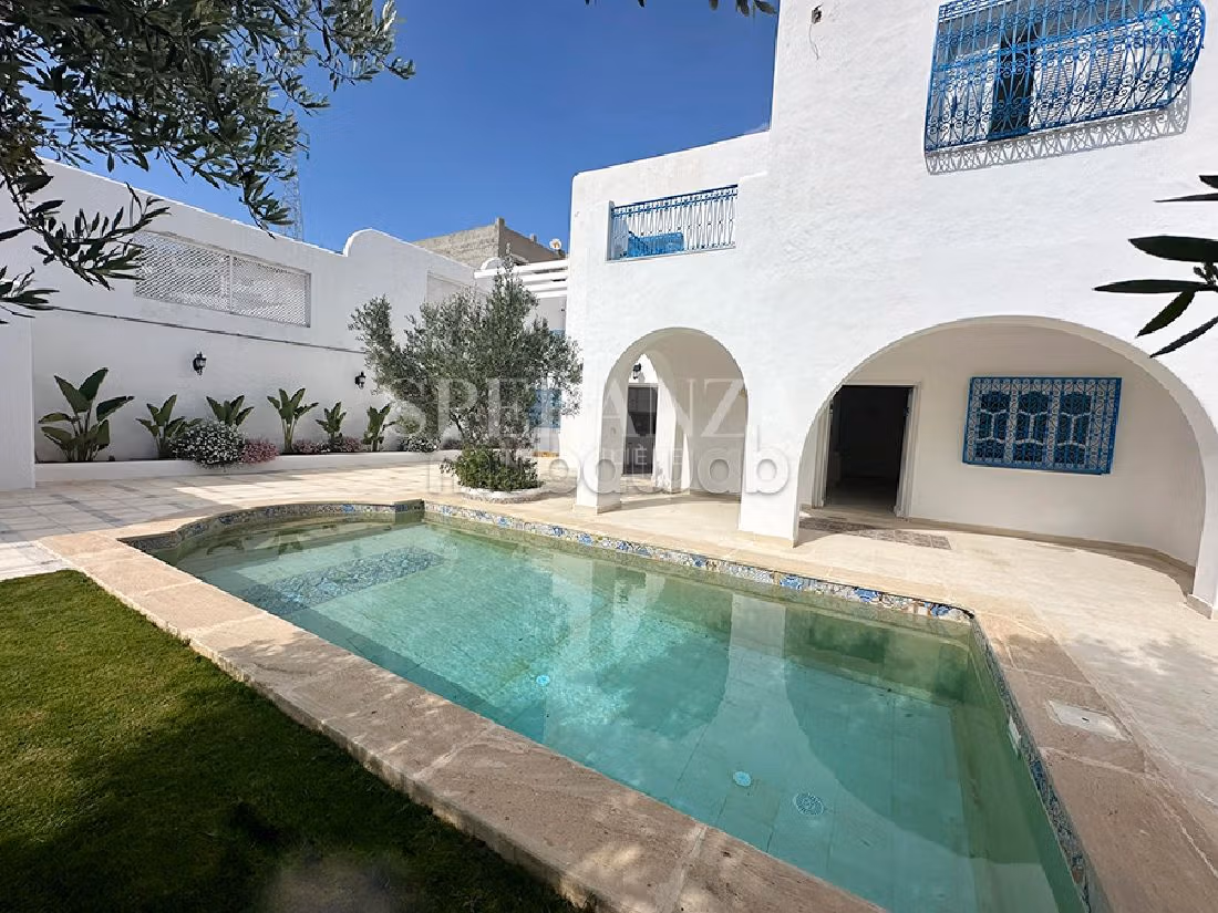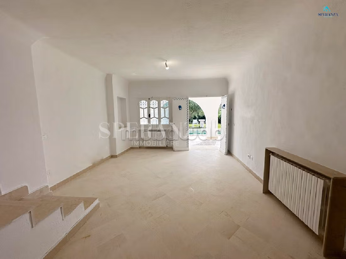Speranza immobilière Hammamet vous propose la vente Cette villa se situé à Hammamet Nord. L'entrée bénéficie d'un jardin gazonné qui offre plusieurs espaces de détente dispose d’un piscine Au rez de chausser se trouve une salon spacieuse et lumineuse , une cuisine bien équipé avec des espaces de rangements, une suite parentale ,salle d'eau .Un escalier nous mène vers 1 ér étage qui se compose de trois suite parentales avec terrasse .Un garage.