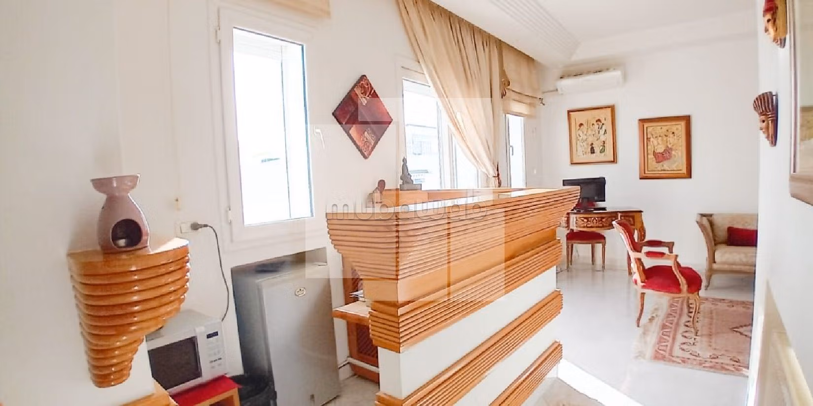 Cet appartement est situé au cœur de Sidi Bou Saïd, au deuxième étage d'une petite résidence dans un quartier calme, sécurisé tout en étant proche des commodités.