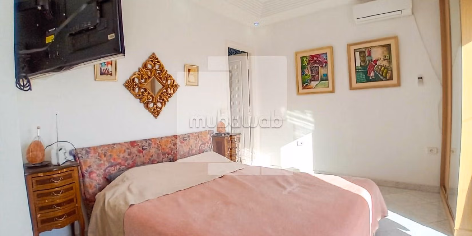 L'entrée donne sur un salon lumineux, richement meublé qui s'ouvre sur une terrasse offrant une vue dégagée.