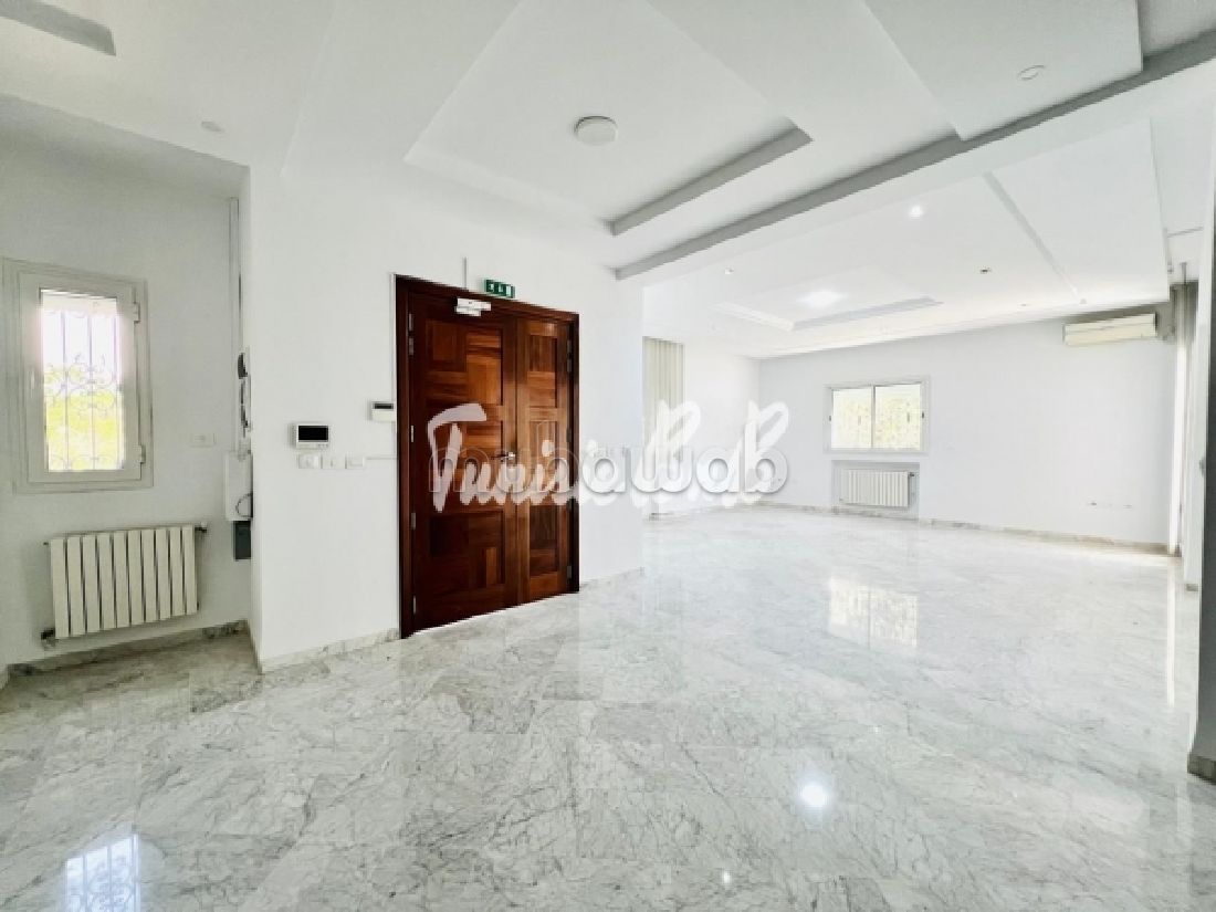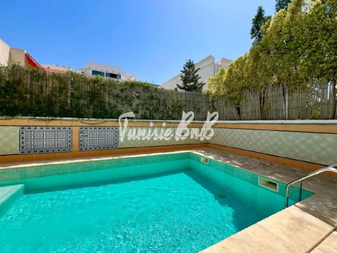 l’agence immobilière Tunisie BnB vous propose la location d’une villa avec piscine au lac2 située dans un quartier calme et sécurisée . elle se compose comme suit un RDC avec un grand salon une salle a manger un séjour un espace bureau un open space qui donne sur le jardin une cuisine équipée une salle d’eau pour les invités et une suite parentale. On trouve au 1er étage salonune suite parentale et quatre chambres avec deux salles de bain communes. Au Sous -sol on trouve une cuisine de service une chambre à coucher une laverie une salle de bain et le local technique .Deux abris de voitures sont disponibles et un garage pour deux autres voitures.
