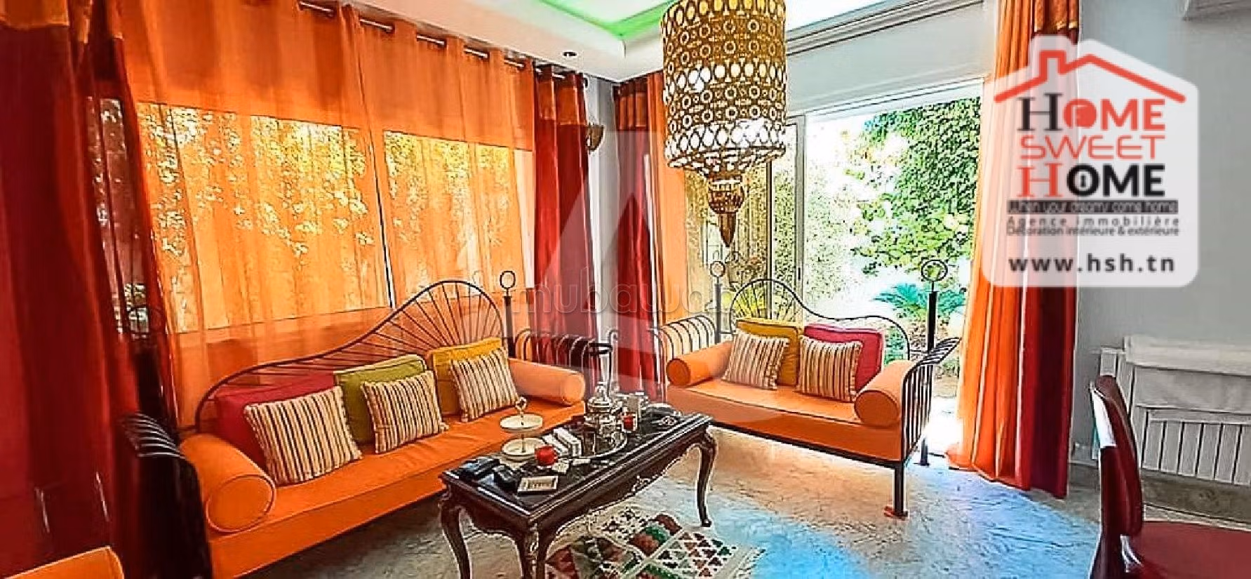 Une villa meublée de haut standing, située dans un quartier résidentiel prestigieux à La Marsa. Au RDC, On trouve un grand salon, une salle à manger, un séjour, une cuisine équipée et une salle d'eau. À L'étage, On trouve une suite parentale avec jacuzzi, 3 chambres, une salle de bain et un balcon. À L'extérieur, On a une terrasse et un jardin. Pour tous les renseignements, Contacter l'agent .