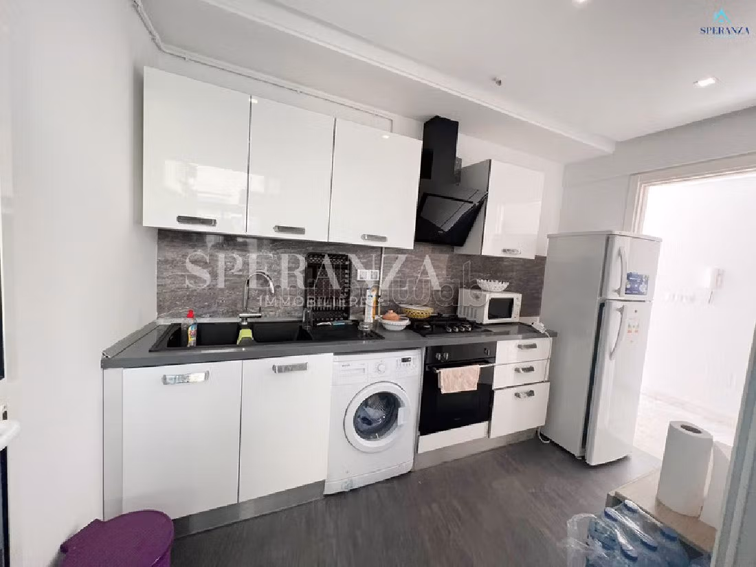 Speranza immobilière Hammamet vous propose à la vente cet appartement situé à Nabeul en 3éme étage proche de toutes les commodités. L'entrée donne su un salon lumineux grâce à ses fenêtres qui possèdent un accès au terrasse vue mer. La cuisine est bien équipée par plusieurs éléments de rangement. Le compartiment nuit dispose une chambres à coucher avec leur propre dressing. Et une salle d'eau. Ainsi qu'un cellier et une place parking.