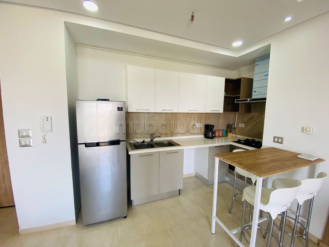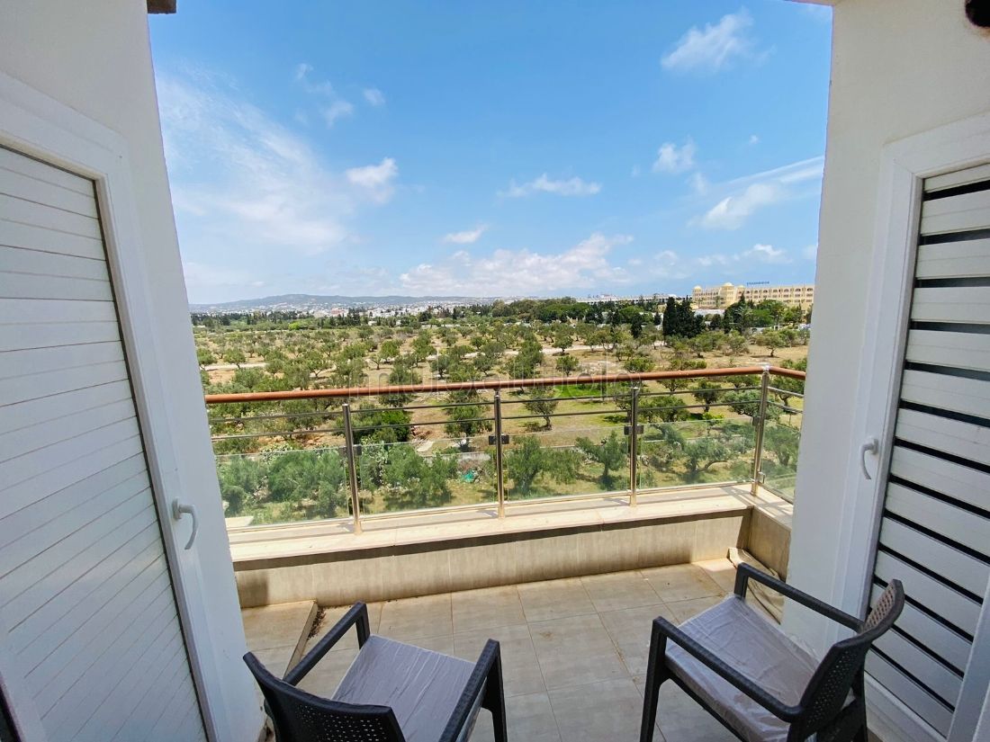 Cet appartement occupe le dernier étage d’une résidence sécurisée et gardée, située en plein cœur de la zone touristique de Hammamet Sud. L’entrée s’ouvre sur un salon lumineux offrant une vue dégagée. La cuisine est ouverte et équipée d’une plaque de cuisson, d’un four électrique et d’une hotte aspirante.