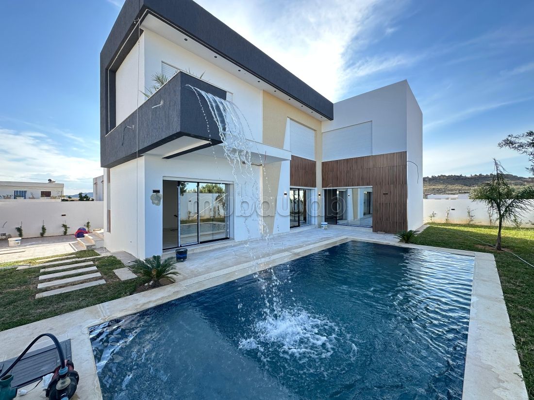 A vendre une charmante villa de style moderne en cours de finition située à Hammamet Sud ZONE MONCHAR , loin 10 min par voiture à Hammamet Yasmine.