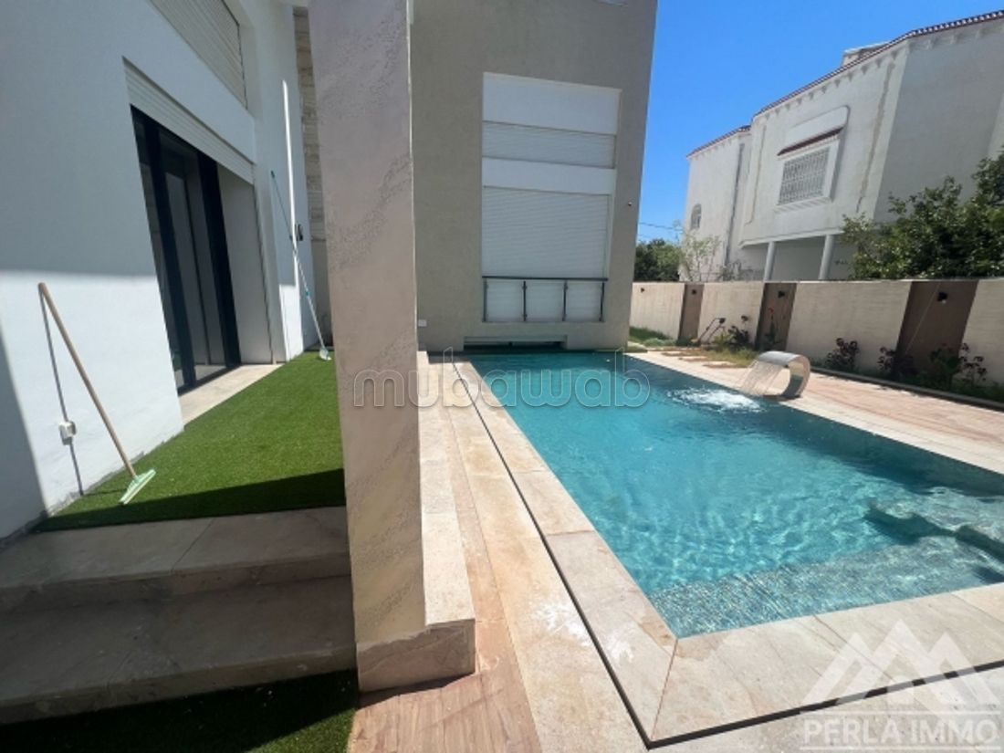 Rez de chaussée : salon lumineux à double hauteur avec vue imprenable sur la piscine, cuisine entièrement équipée, séjour supplémentaire et salle d’eau pour les invités.