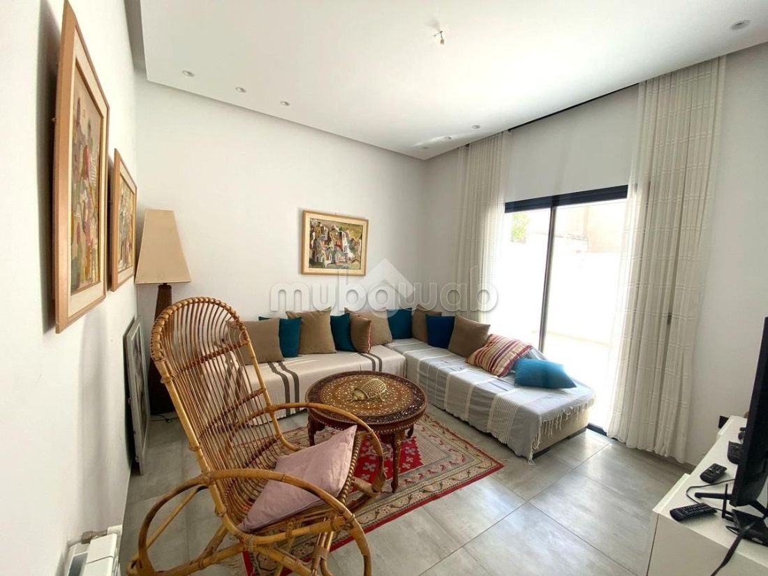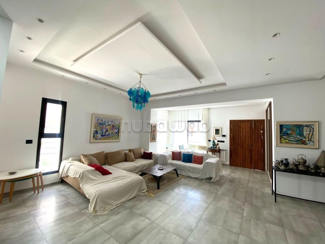 Notre villa, construite sur deux niveaux et richement meublée, est idéalement située dans un quartier résidentiel recherché à El Menzah 7, sur un terrain de 300 m².Le rez-de-chaussée comprend un salon lumineux avec vue sur le jardin, une cuisine entièrement équipée ainsi qu’une salle d’eau.Au premier étage, vous trouverez trois chambres à coucher, toutes dotées de dressings, dont une suite parentale, ainsi qu’une salle de bain commune.À l’extérieur, la villa bénéficie d’un jardin arboré et d’un abri pouvant accueillir deux voitures. Elle est également équipée du chauffage central et de la climatisation.