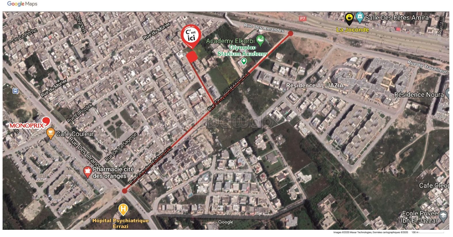 Terrain viabilisé de 271 mètres carré à Manouba cité les orange, idéalement situé dans une zone résidentielle prisée à 500 mètres des commerces, (Monoprix, pharmacie, pizzeria, restaurants, salon de thé etc...)