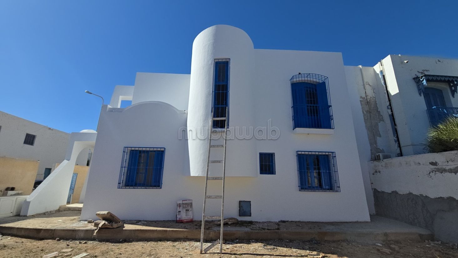 Au rez-de-chaussée : un salon spacieux et lumineux, une chambre, une cuisine indépendante, et une salle d'eau. À l'étage : deux chambres spacieuses et lumineuses, dont l'une dispose d'une coupole offrant une architecture typique. Un balcon vous offre une belle vue sur Djerba.