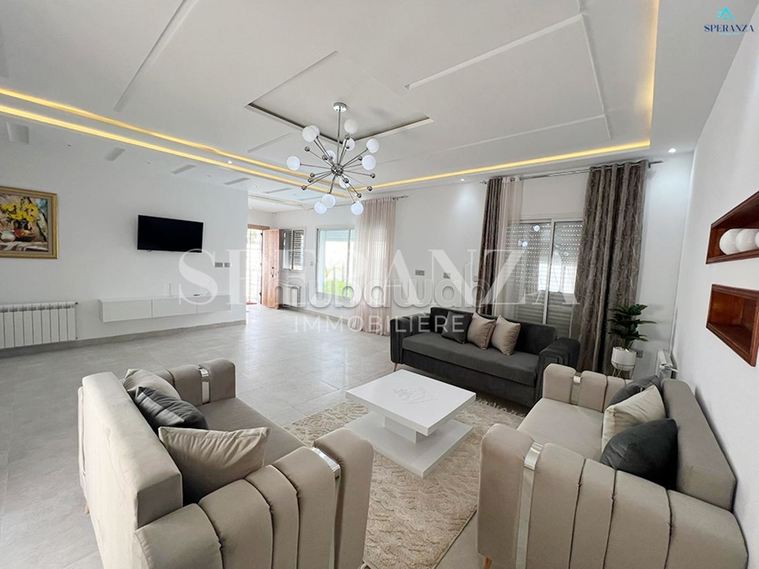 Speranza immobilière Hammamet vous propose location vacances. Cette Villa se situe à Hammamet . L'entrée principale se Bénéficie d'un jardin gazonné avec une piscine, un salon, une cuisine dispose de plusieurs éléments de rangement, La partie jour est complétée par une salle d’eau pour les invités. Un escalier nous emmène au 1er étage qui possède une suite parentale et deux chambres à coucher, Une salle de bain et un garage.