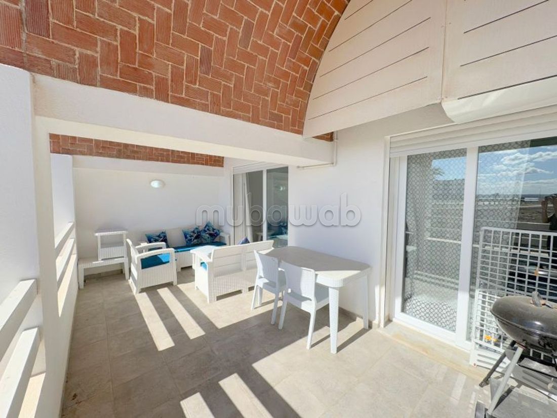 À votre arrivée, vous découvrirez un salon lumineux offrant une vue sur la mer et donnant accès à une terrasse filante orientée plein est, agrémentée de voûtes en arc.