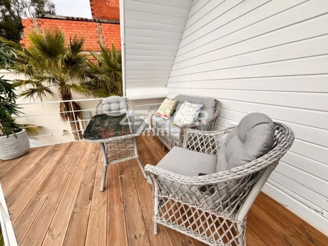 À l’étage, on trouve deux chambres confortables, une salle de bain et un balcon agréable.
