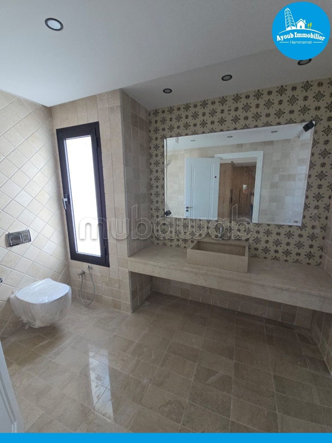 Imaginez-vous dans une oasis de luxe, où l'architecture arabesque contemporaine se mêle à la beauté naturelle. Cette villa de rêve est composée de 4 suites spacieuses, dont une au rez-de-chaussée, offrant un accès direct au jardin verdoyant. La cuisine, moderne et équipée, est un véritable paradis pour les gépas des saveurs. L'abri pour 3 voitures vous garantit une sécurité optimale pour votre véhicule. Un véritable havre de paix, où le luxe et la sérénité se rencontrent. La villa est à 3km de Jinen Hammamet et elle fait 600m² de terrain dont 450m² couvert. Prix 1.550.000 négociable.