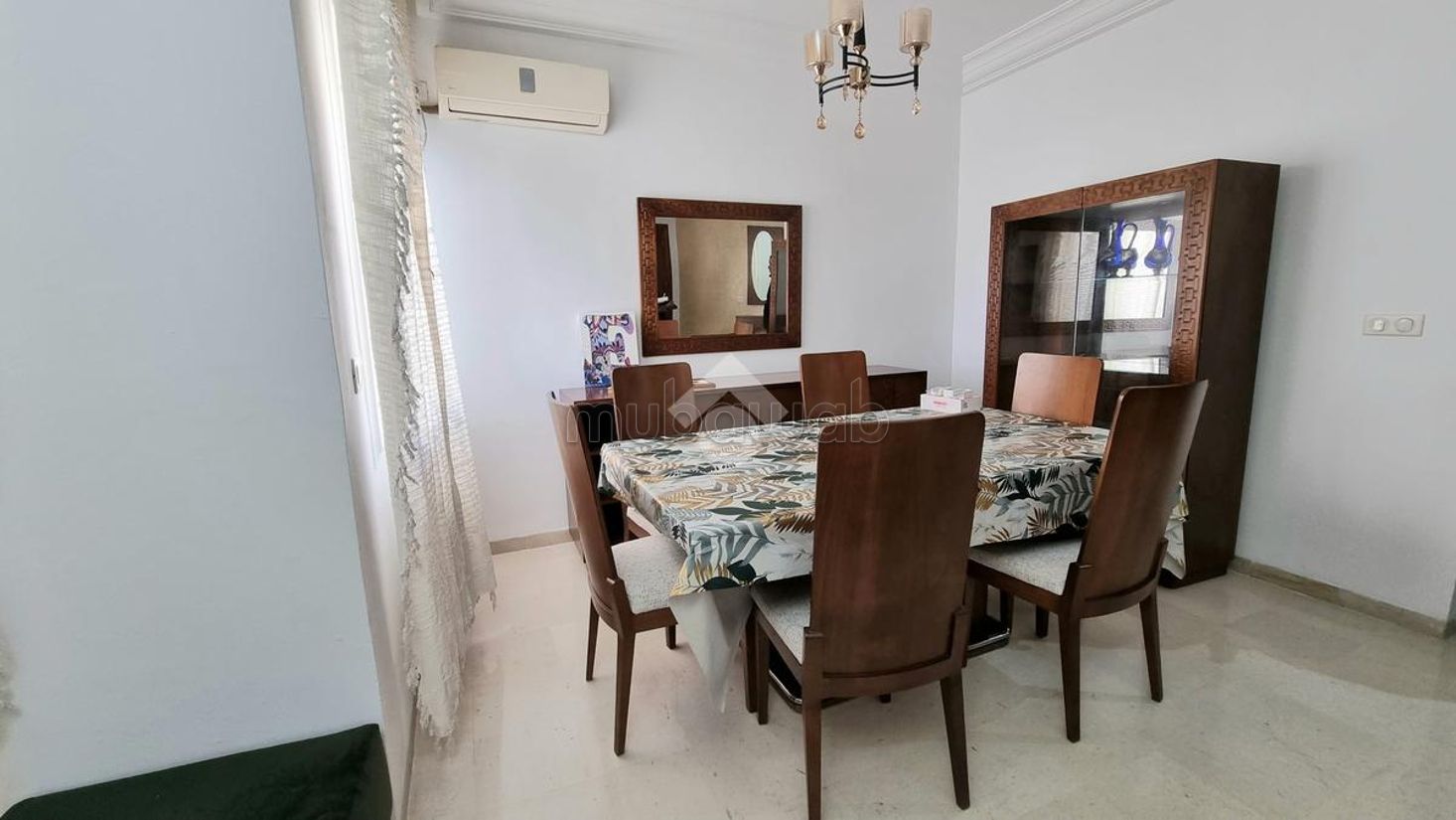 Cet appartement S3 occupe le quatrième étage d’une résidence sécurisée, dotée d’un ascenseur. Il est idéalement situé à Cité El Aouina, à proximité de toutes les commodités. Dès l’entrée, vous serez accueilli par une pièce de vie spacieuse et lumineuse, aménagée avec soin, comprenant un salon confortable et une salle à manger conviviale. La cuisine est aménagée avec des rangements et équipée d’une plaque de cuisson, d’une hotte aspirante et d’un four. Un séchoir offre plus de fonctionnalité. La partie nuit abrite deux chambres à coucher meublées, avec dressing. Une salle de bain commune est également à disposition. L’appartement est équipé du chauffage central ainsi que de la climatisation en split système.