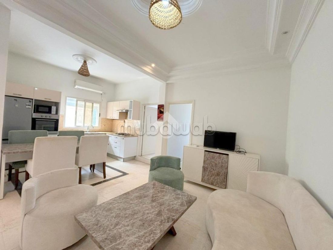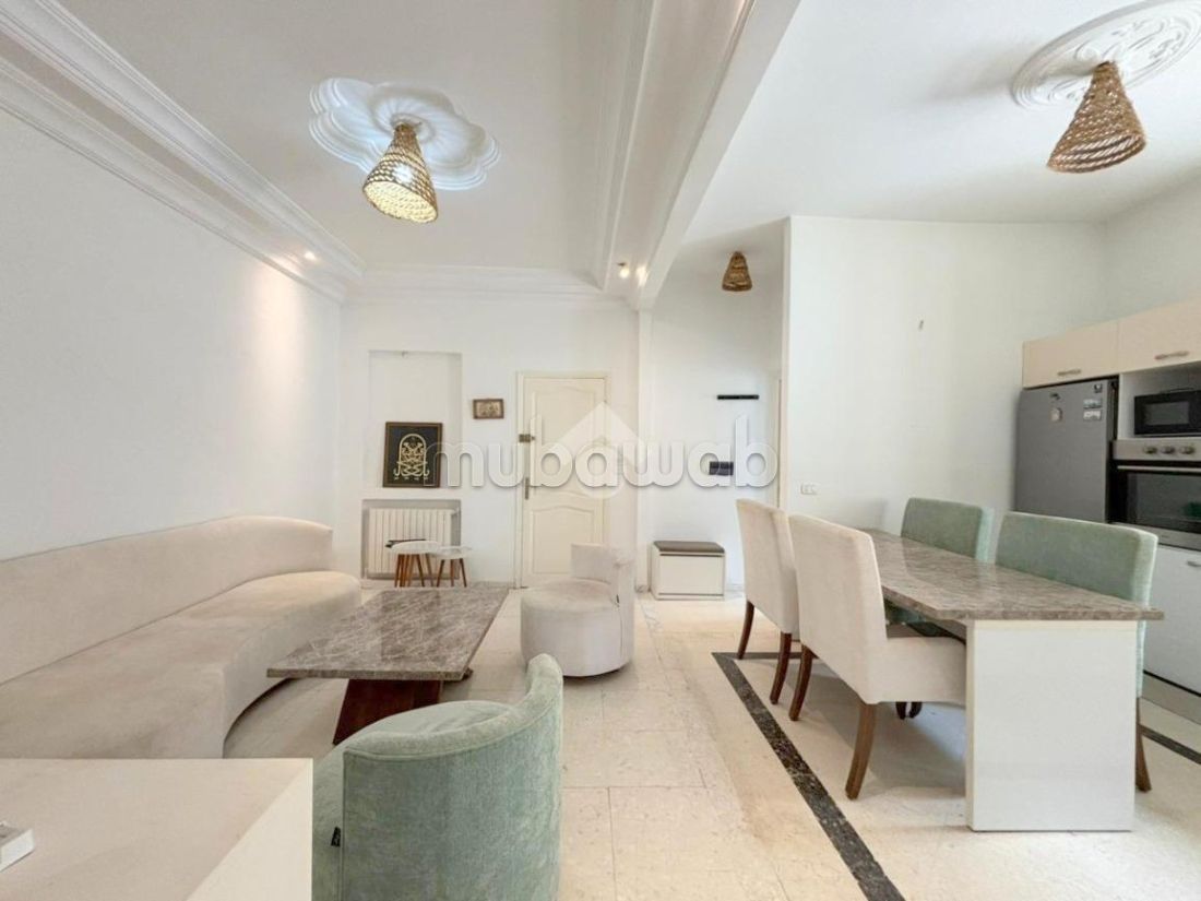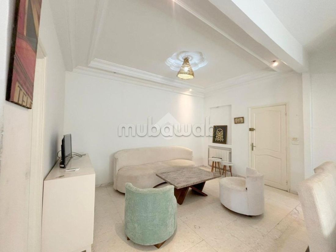 Un duplex S2 meublé, situé à La Marsa au premier étage, offrant un cadre de vie confortable et fonctionnel.La partie jour se distingue par un salon spacieux et lumineux, aménagé avec goût, une cuisine richement équipée répondant à tous les besoins du quotidien.La partie nuit comprend deux chambres à coucher, chacune dotée de dressings, et une salle de douche moderne.