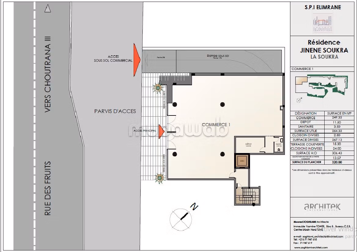 La promotion immobilière Elimrane vous présente à la vente deux locaux commerciaux situés dans la nouvelle Résidence Jinene Soukra 1. Idéalement conçus pour tout projet ambitieux, ces espaces offrent des opportunités exceptionnelles pour diverses utilisations telles que showroom, magasin ou autres commerces.