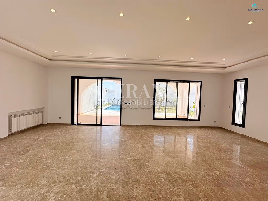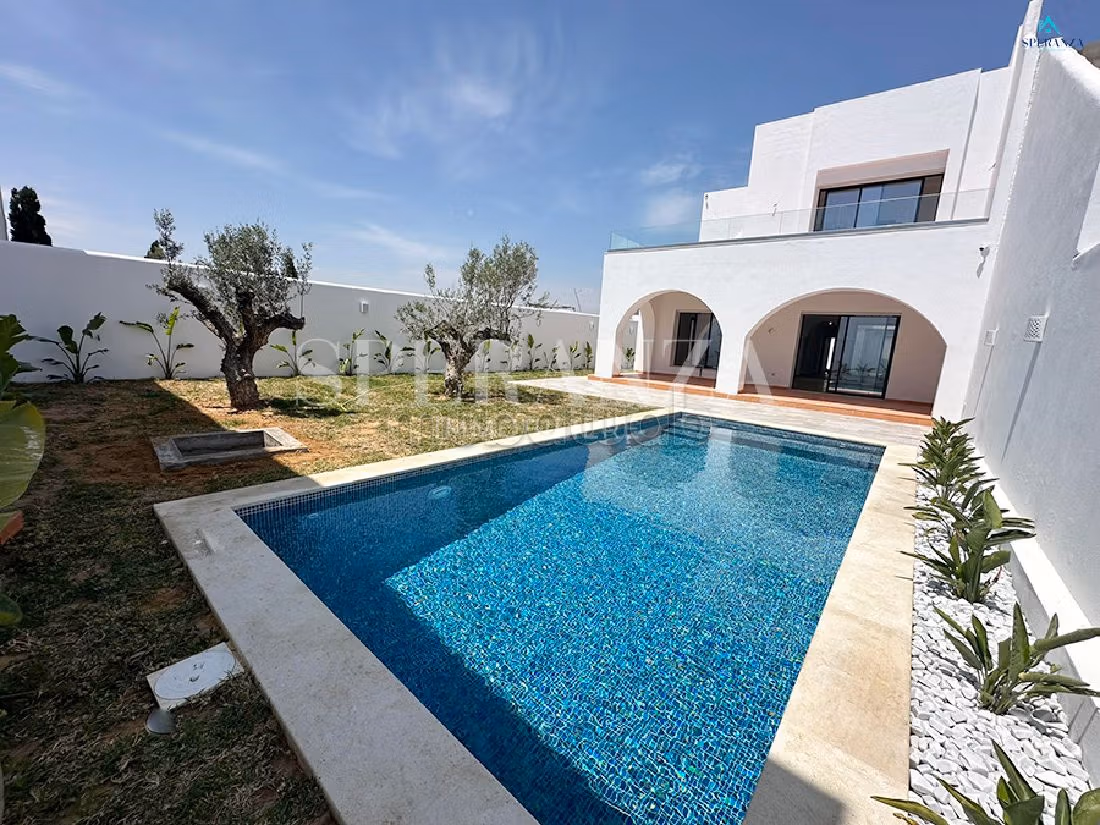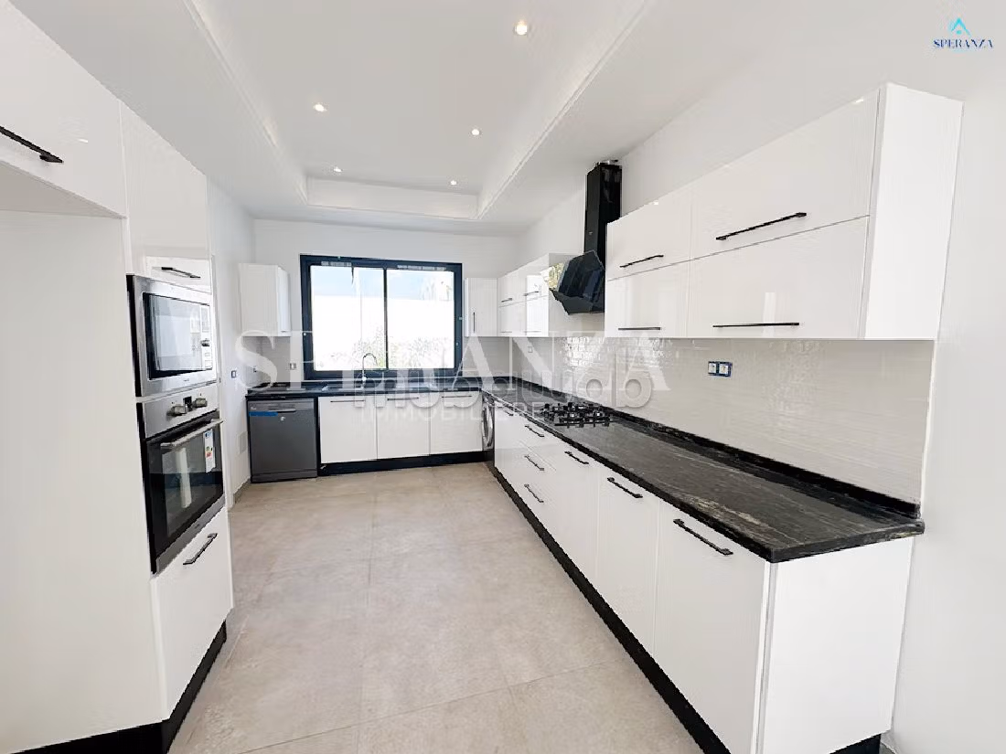 Incantevole villa in vendita. Prezzo 1 290 000 TND. 5 camere da letto, 2 bagni, 500 m². 5 locali luminosi. Nuovo. Goditi il comfort degli spazi all'aperto con il terrazzo e il giardino. Dispone anche del garage.